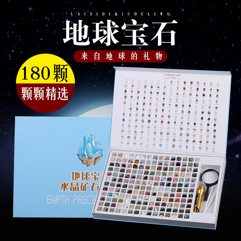 天縱晶華150種天然礦物寶石兒童石頭禮盒瑪瑙水晶礦石標本套裝