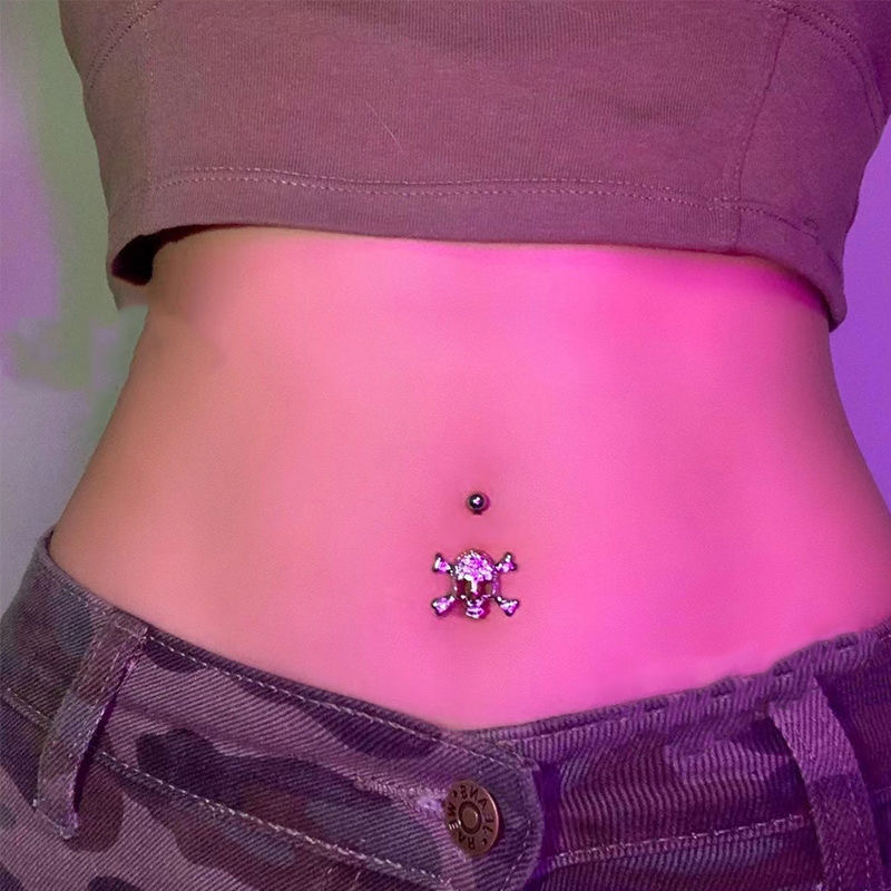墨刺研究室 骷髏頭肚臍釘性感超辣鈦鋼防過敏臍環替換釘穿刺飾品