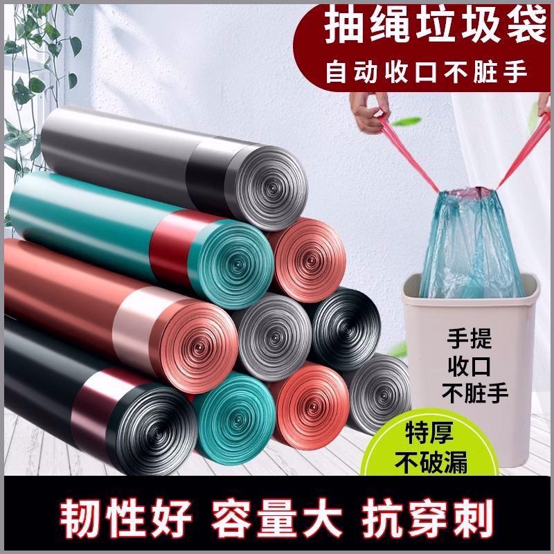印花抽繩垃圾袋家用加厚手提式實惠裝廚房大號特超厚塑料袋子加厚