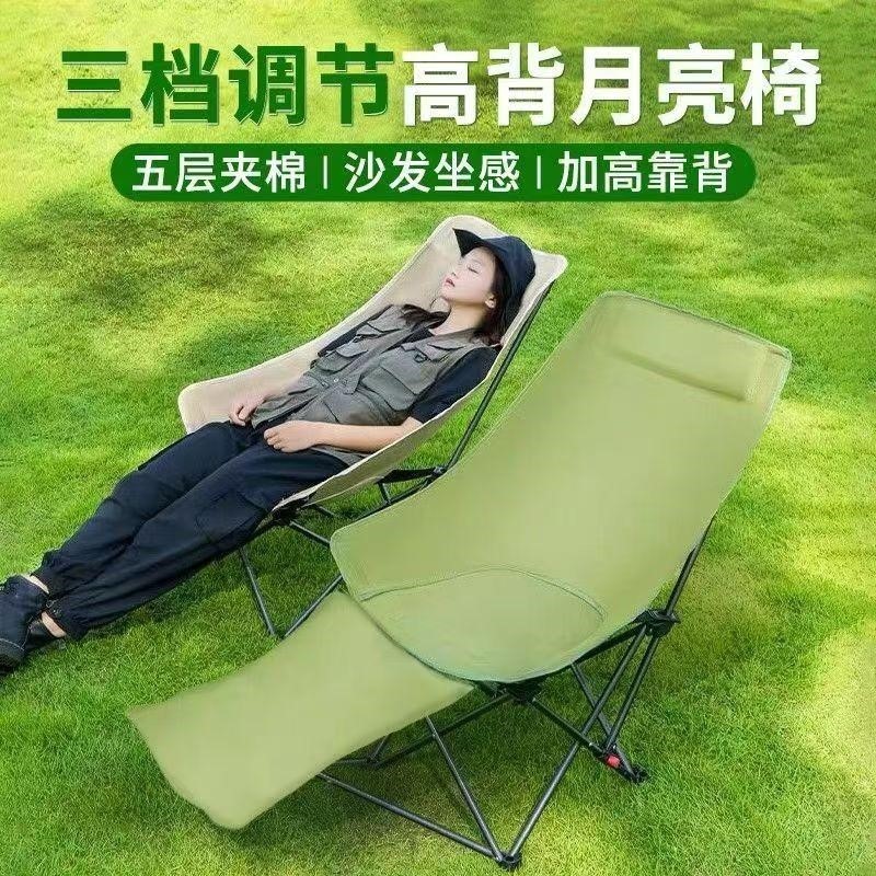 三檔可調節月亮椅可坐可靠可躺戶外加高靠背便攜式折疊椅露營午睡