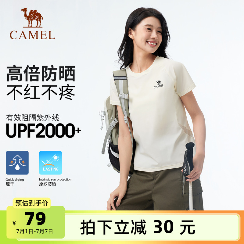 駱駝速干短袖女T恤2025夏新款戶外涼感透氣寬松正肩百搭速干上衣t