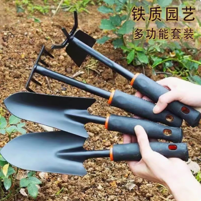 家用園藝工具黑色鏟子三件套耙子兩用鋤頭K大中小號鐵鍬翻土種植