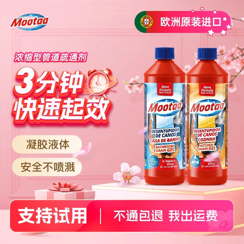 mootaa管道疏通劑廚房油污下水道頭發堵塞強力溶解小飛蟲除臭劑