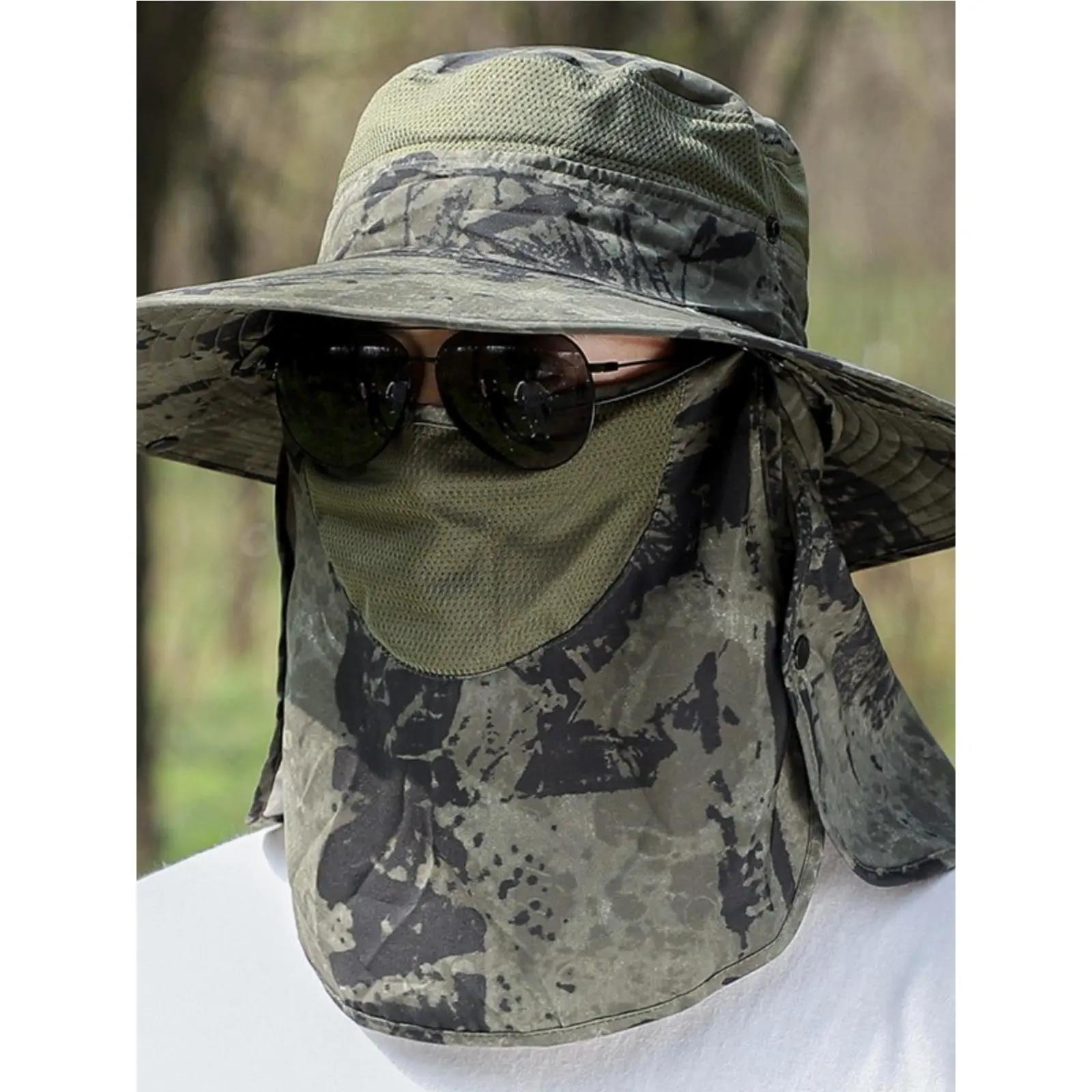 戶外垂釣遮臉護頸防曬帽男士夏季可拆卸大檐登山釣魚帽登山帽