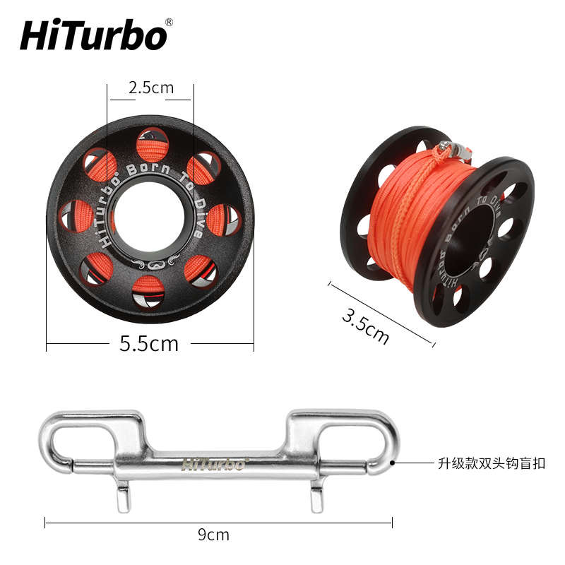 HiTurbo15米潛水象拔線輪鋁合金線圈雙頭鉤防繞卷線放收線軸深潛