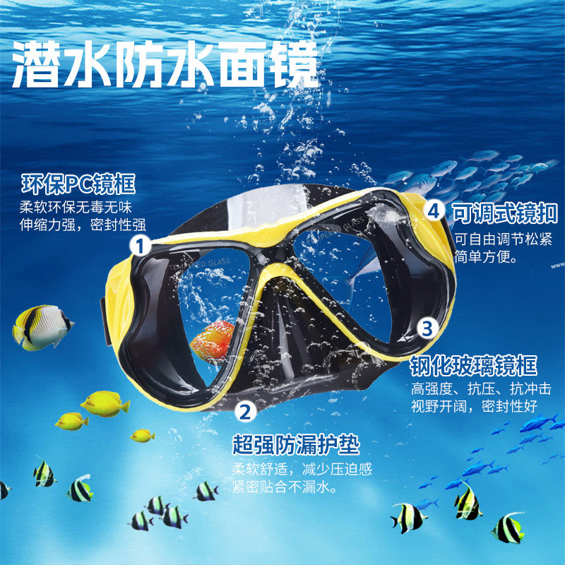 跨境成人潛水鏡歐美東南亞高清潛水面罩大框硅膠潛水面鏡浮潛套裝