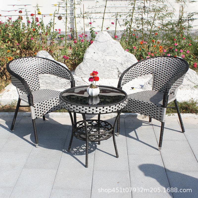 戶外小圓桌露天網紅花園休閑小戶型一桌二椅陽臺茶桌椅藤椅三件套