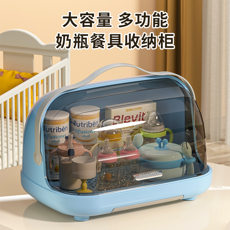 奶瓶收納箱嬰兒專用瀝水防塵收納箱寶寶餐具輔食晾干瀝水架儲物柜