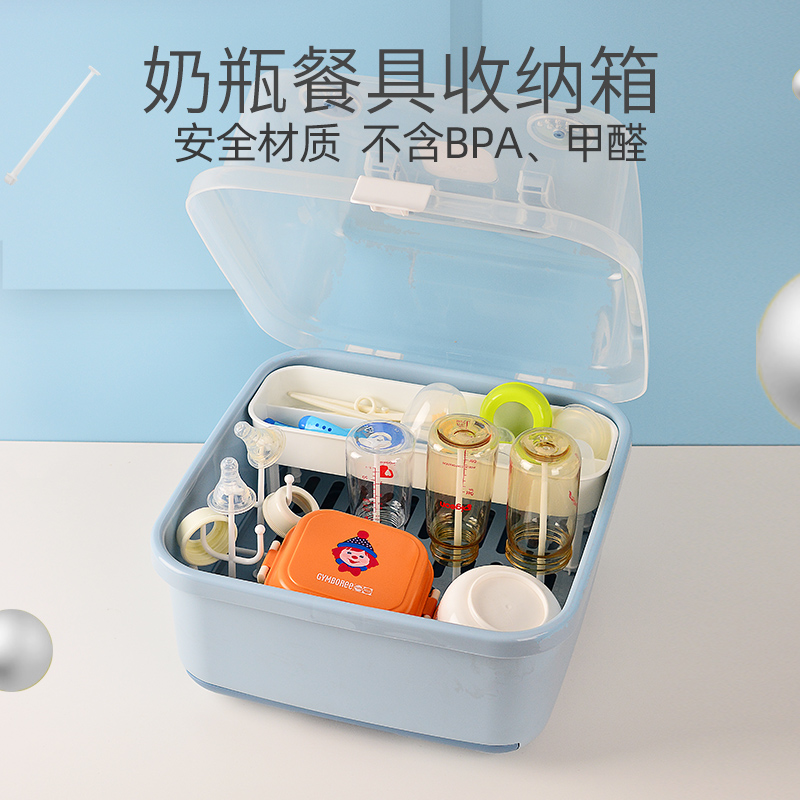 寶寶奶瓶收納盒帶蓋收納箱瀝水防塵嬰兒專用輔食餐具工具置物架盒