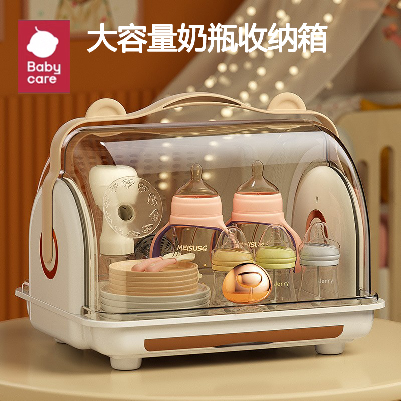 babycare寶寶奶瓶收納箱嬰兒瀝水置物架帶蓋防塵寶寶餐具放碗筷