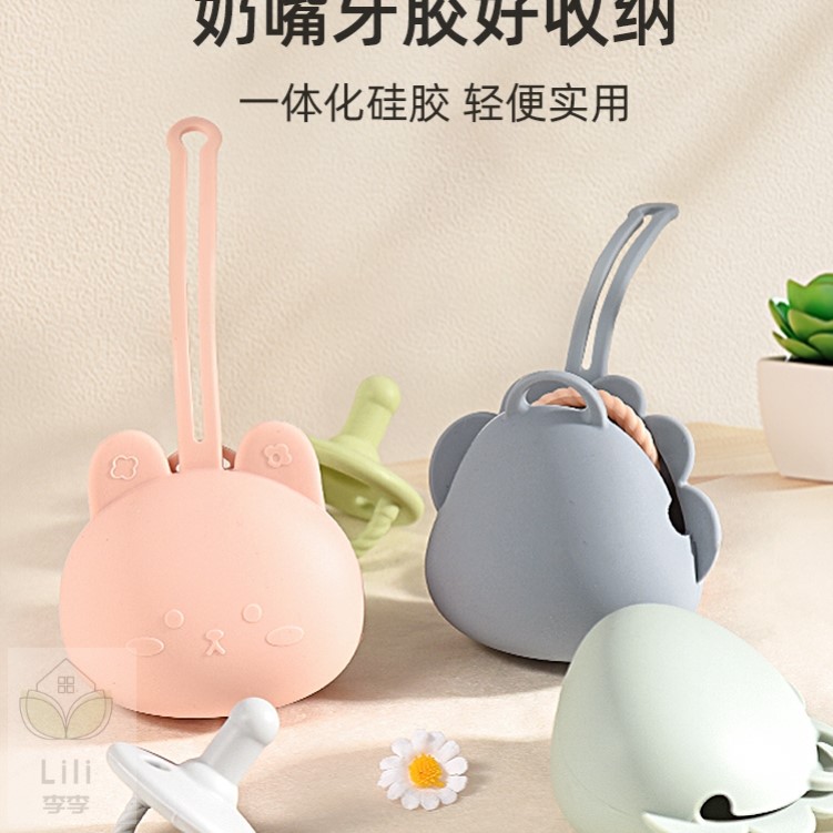 小雅象奶嘴收納盒便攜硅膠收納袋外出寶寶牙膠安撫奶嘴手提防塵盒
