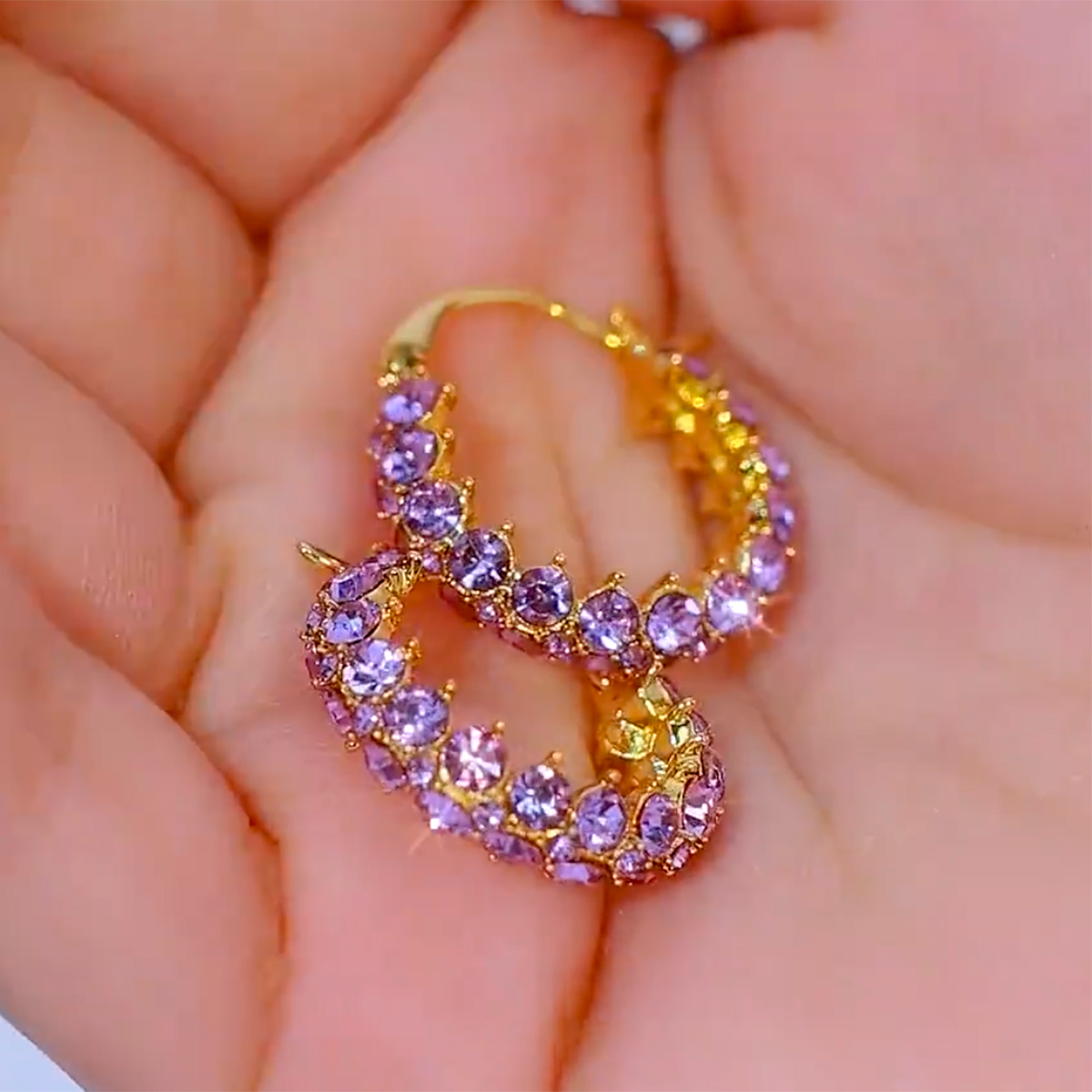 簡約洋氣紫色鑲鉆耳圈高級感小眾設計重工業精致甜美時髦優雅耳扣