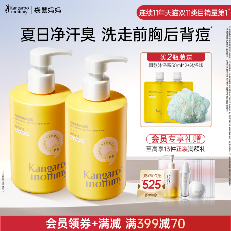 袋鼠媽媽青少年祛痘大黃瓶兒童沐浴露控油清潔后背保濕留香沐浴乳