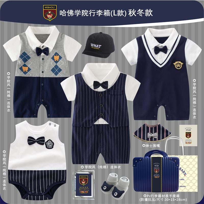 嬰兒禮盒學院風格套裝新出生男寶寶春夏秋冬季款藍色滿月百天周歲