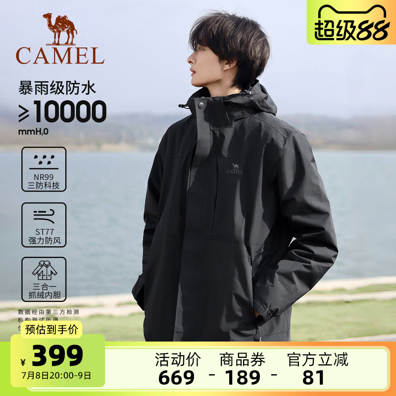駱駝戶外三防沖鋒衣男女三合一可拆卸 防風防水外套進藏登山服裝
