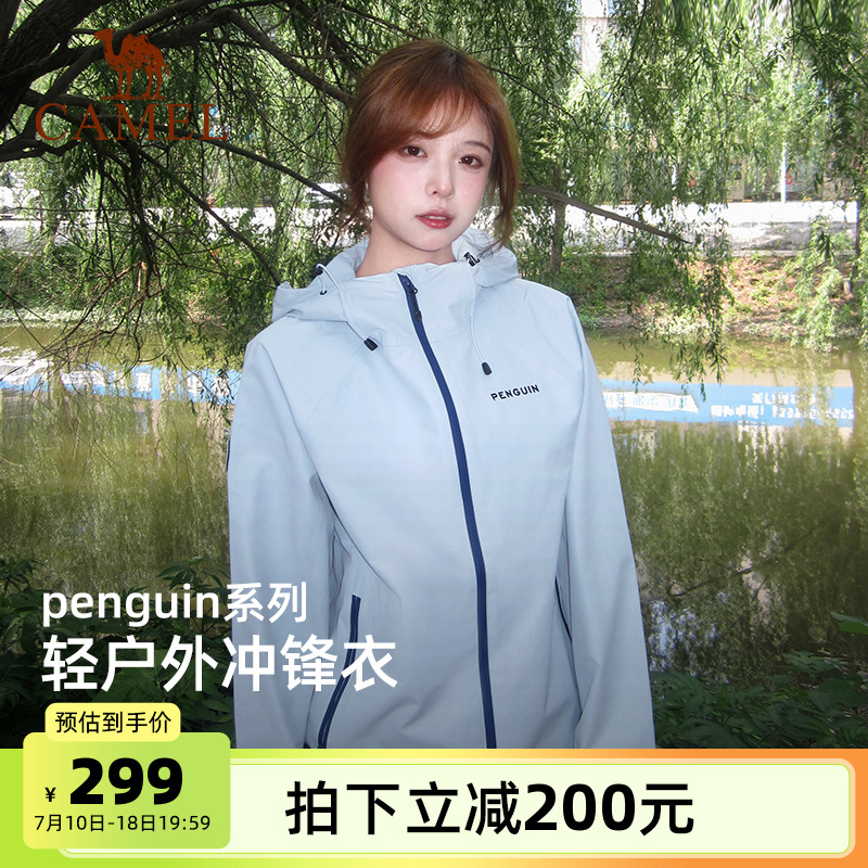 駱駝企鵝戶外單層沖鋒衣女薄款夏季新款防風防水登山外套男遠山藍