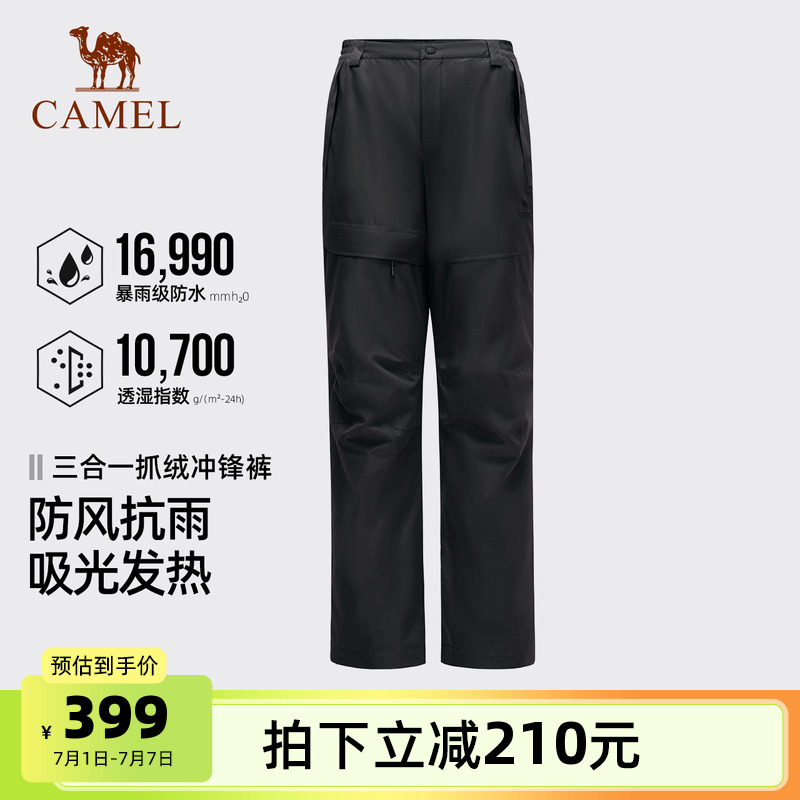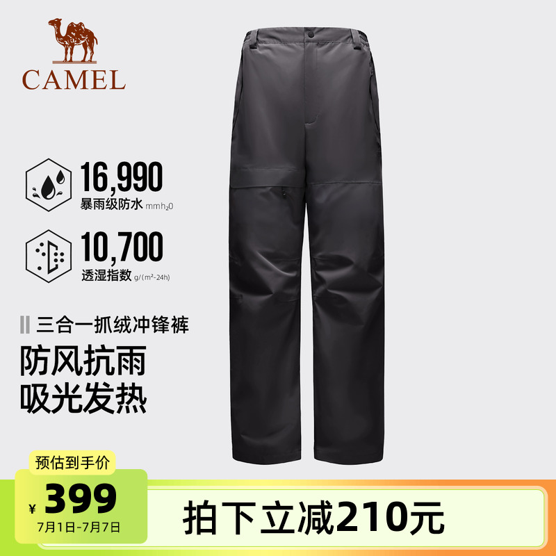 駱駝戶外沖鋒褲男三合一防風防水抓絨內膽高透濕防失溫登山長褲女