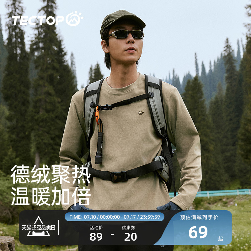 探拓戶外雙面德絨打底衫男女保暖內衣秋冬新款抓絨衣內搭長袖T恤