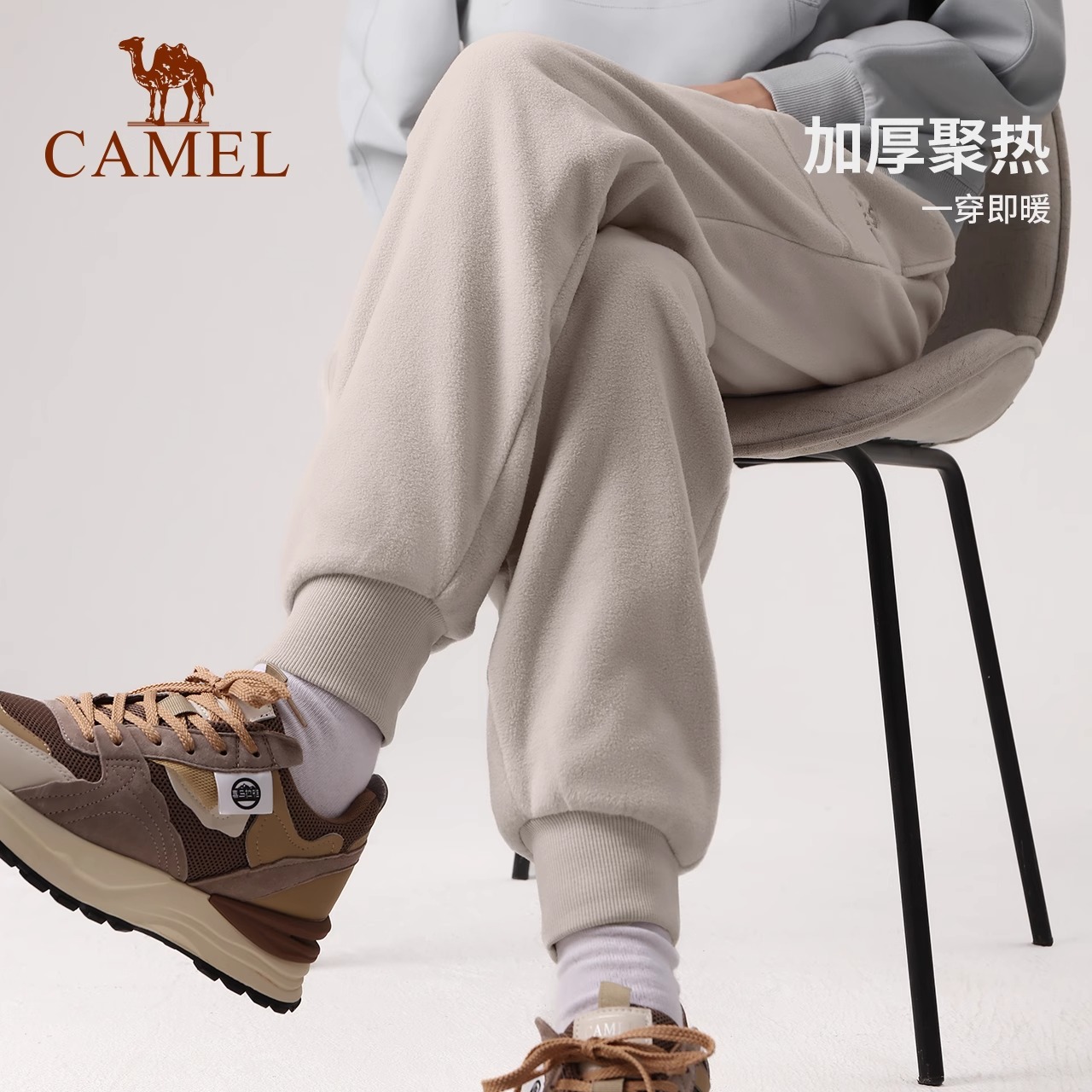 駱駝戶外抓絨褲衛褲女2025春秋新款抗靜電科技蓄熱鎖溫休閑束腳褲