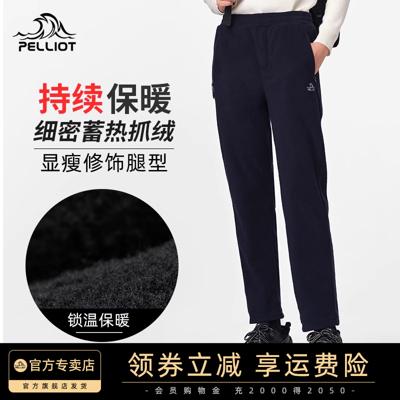 伯希和戶外抓絨褲女士防風透氣內膽長褲男搖粒絨保暖直筒運動衛褲