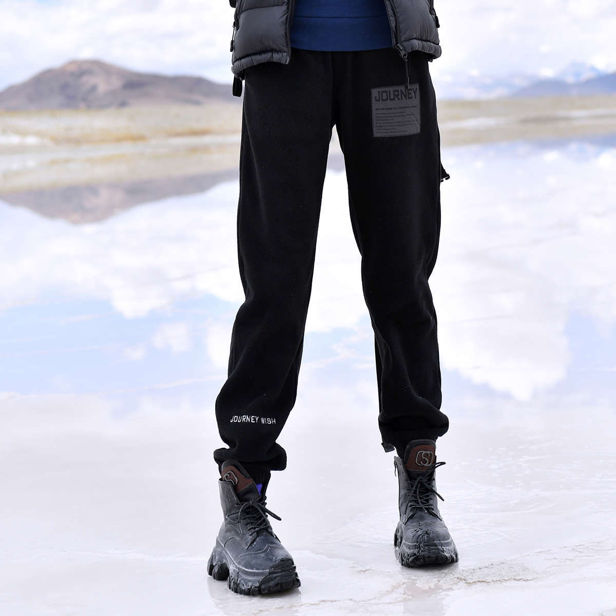 拓路者雙面加絨搖粒絨長褲男秋冬針織長褲加厚保暖V百搭衛褲運動