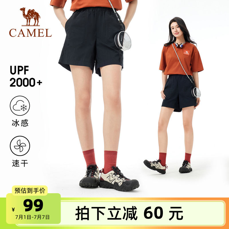 駱駝戶外速干短褲女 夏季透氣吸汗運動褲五分褲冰感防曬速干褲男