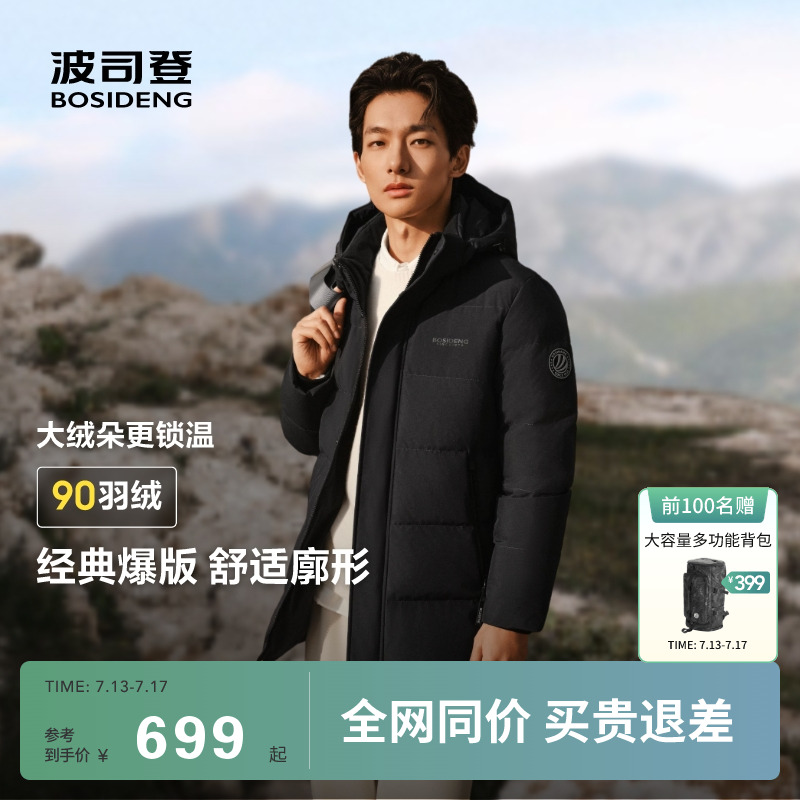 波司登2025新款冬季男款羽絨服保暖防風90羽絨可拆卸帽加厚中長款