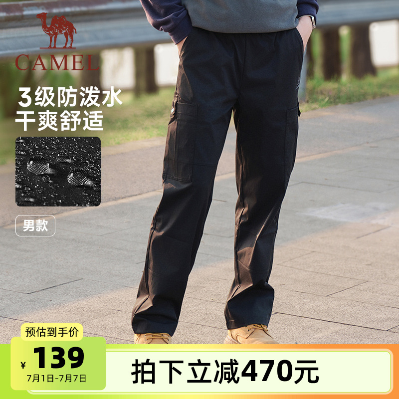 駱駝戶外工裝褲男2025春夏季梭織長褲防潑水休閑運動徒步登山褲女