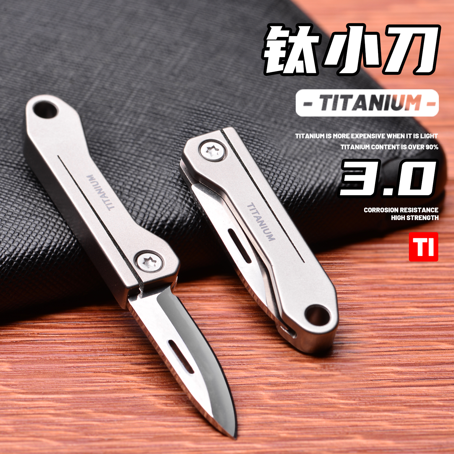 鈦合金折疊小刀鑰匙掛件隨身便攜式開箱拆快遞小刀鑰匙扣掛件