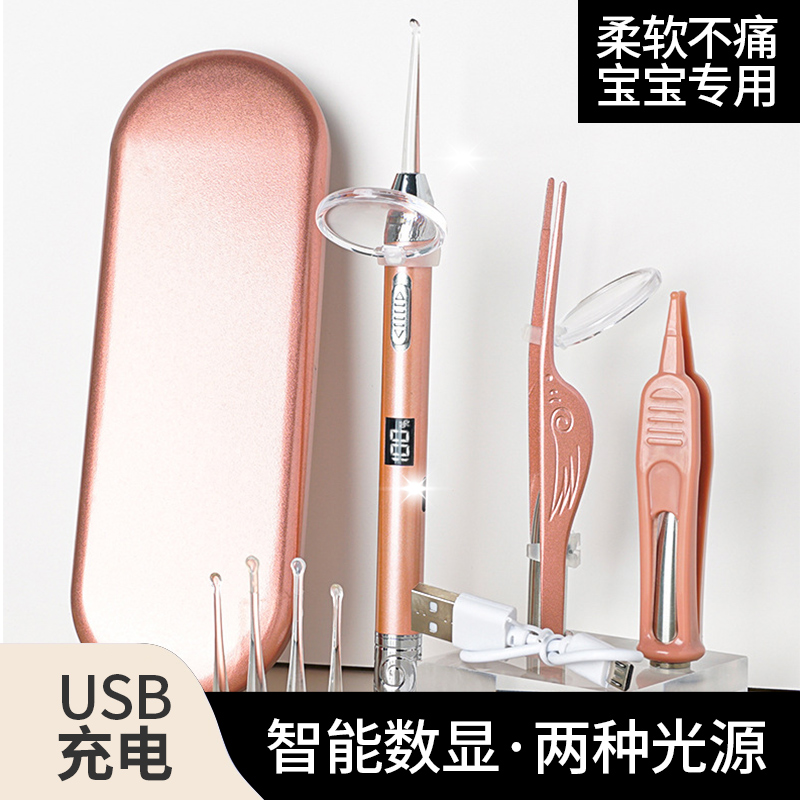 兒童掏耳勺發光帶燈耳屎鑷子硅膠高級耵聹鉤充電挖耳采耳專業工具
