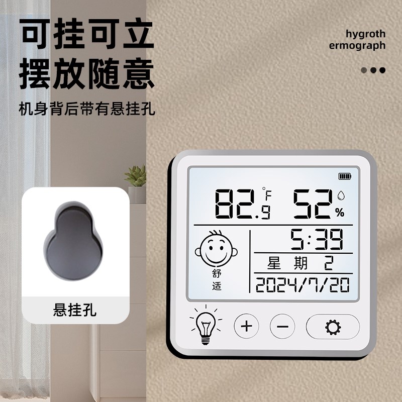 熱銷出歐美濕溫度計大屏幕高精度傳感器室內家用桌面立式壁掛磁吸