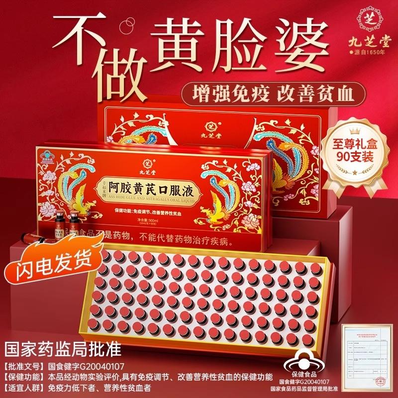 阿膠補氣補血女人黃芪益氣養血口服液調理氣血不足禮盒正品旗艦店