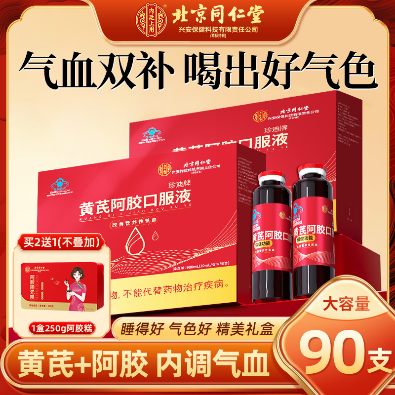 北京同仁堂黃芪當歸阿膠口服液正品好吃的補氣血營養補品年貨禮盒