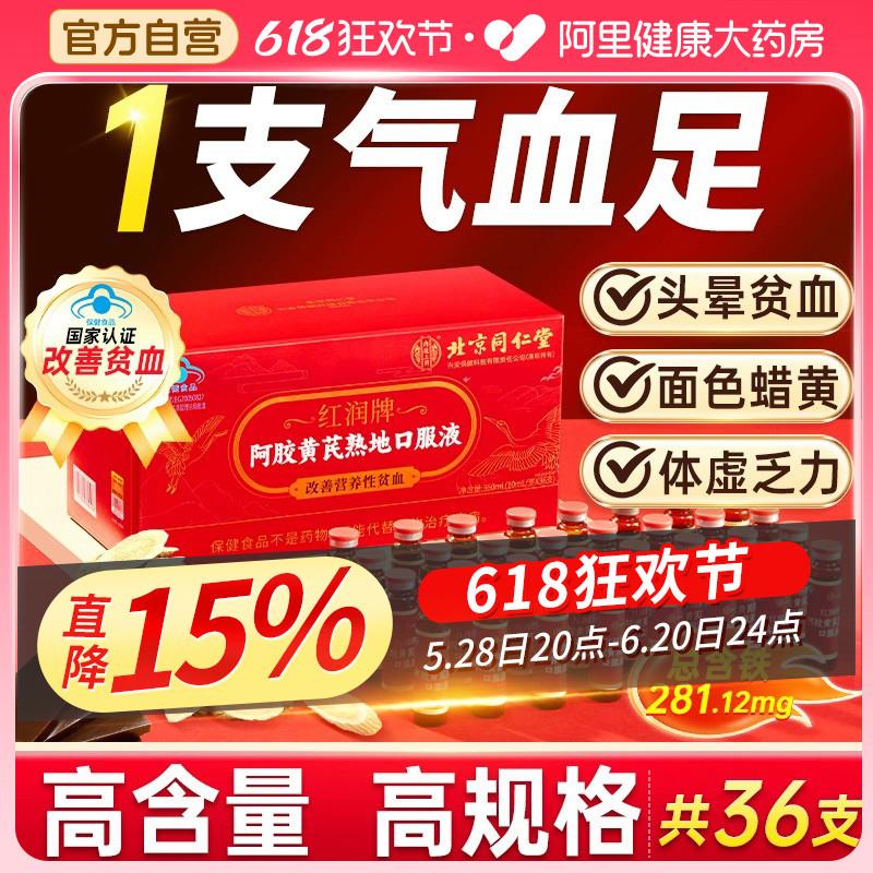 北京同仁堂阿膠黃芪口服液補氣血女當歸熟地黃調理貧血