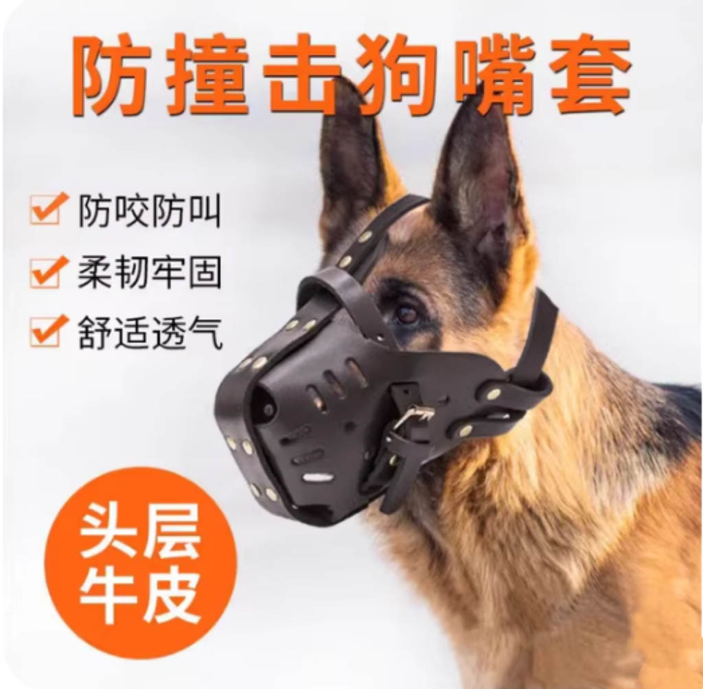 牛皮狗狗嘴套中大型犬馬犬杜賓東德牧撞擊口籠防咬人口罩訓犬實戰