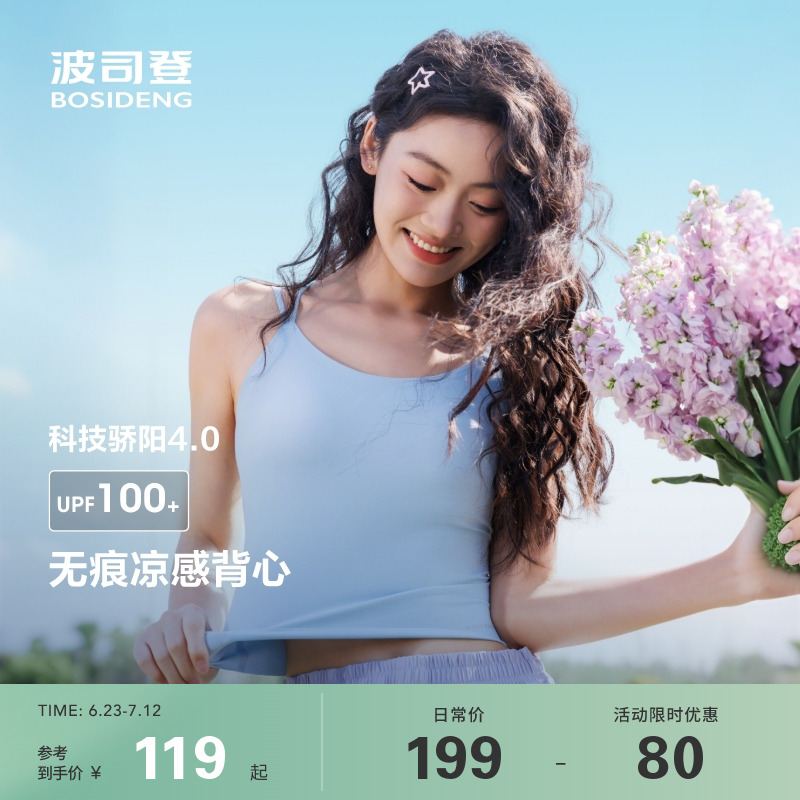 波司登2025夏季新款戶外防紫外線遮陽防曬UPF100+涼感背心吊帶女
