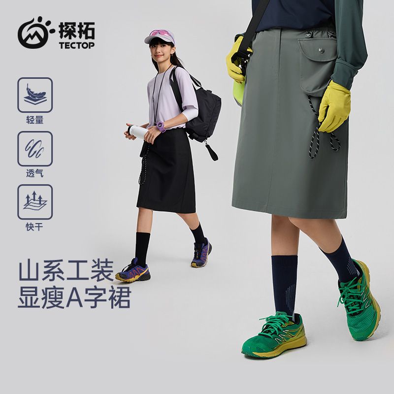 TECTOP/探拓戶外工裝裙女士顯瘦半身裙春夏中長款休閑運動直筒裙