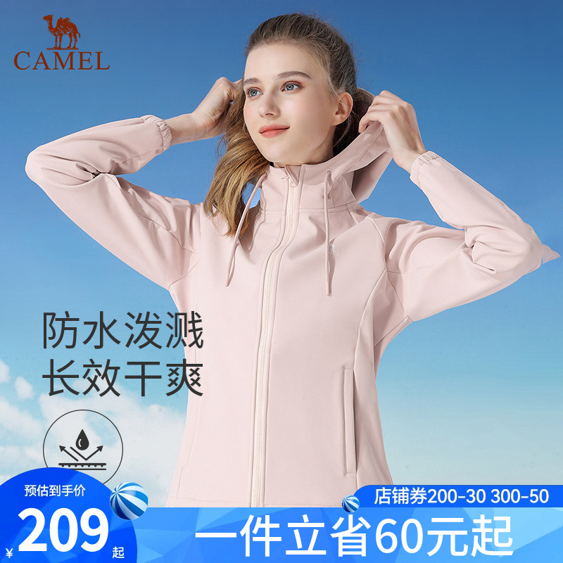 駱駝瑜伽服男女款春季加絨運動服長袖連帽外套防水防風修身沖鋒衣