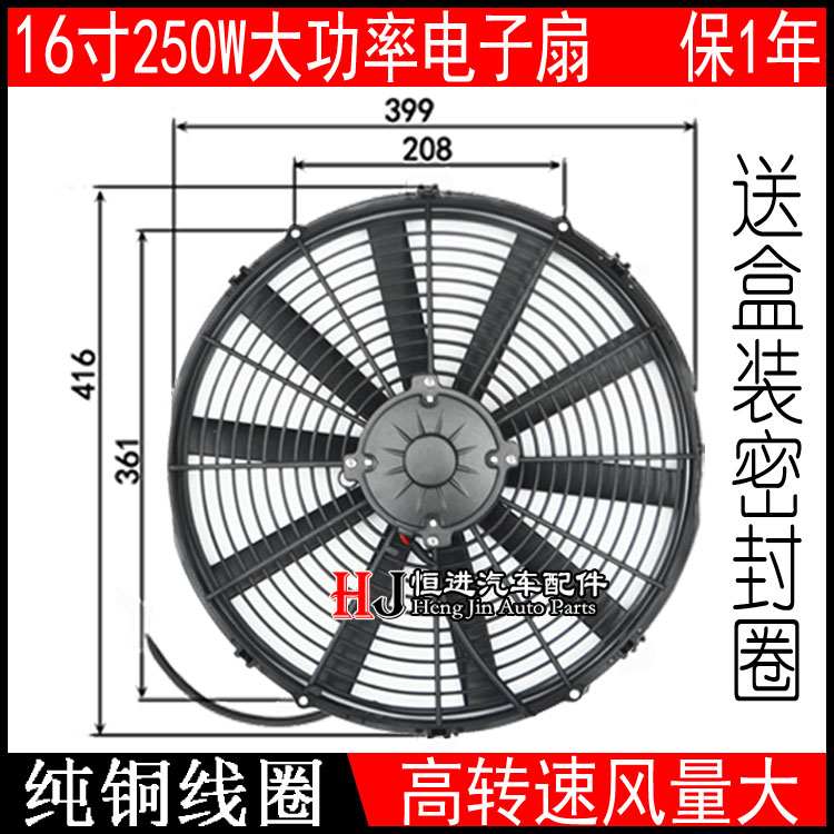 大功率16寸250W吉普212水箱風扇越野車散熱冷凝器空調電子扇包郵