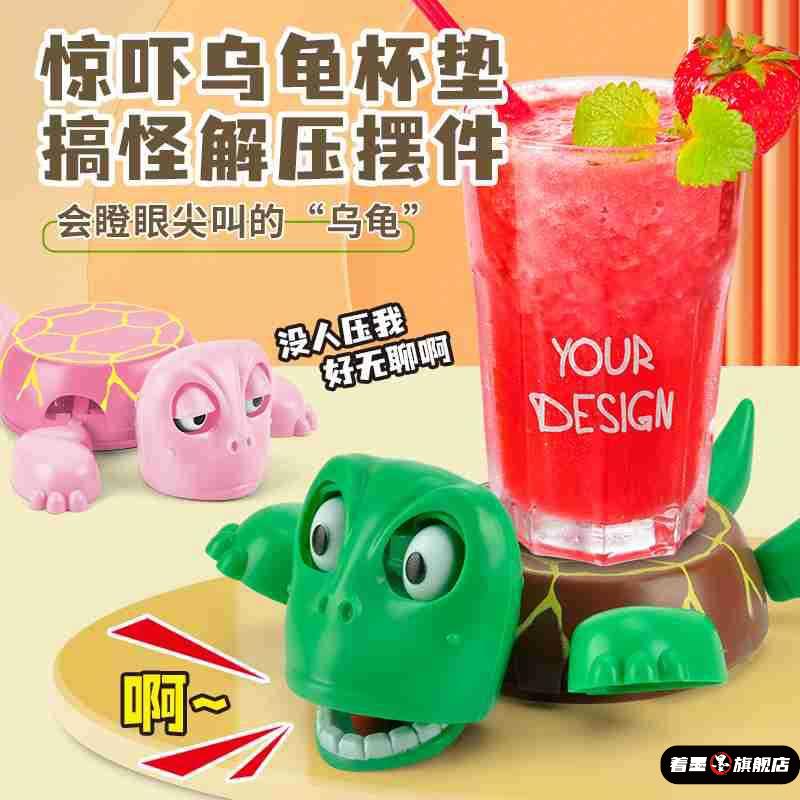 烏龜杯墊搞怪會動一驚一乍抽象王八桌面水杯墊創意3d打印伸縮瞪眼