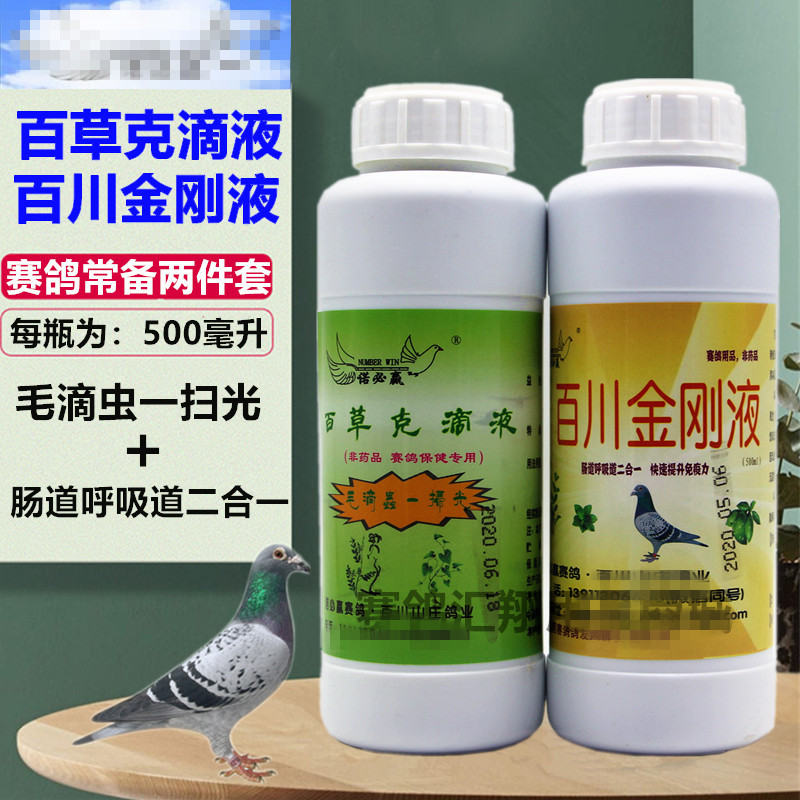 諾必贏百草克滴液+百川金剛液500ml毛滴蟲一掃光呼吸道腸道鴿藥套