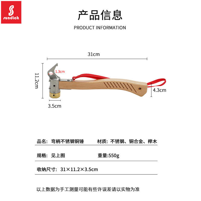 戶外不銹鋼銅頭錘 野營帳篷天幕地釘錘子營地大頭銅錘拔釘器榔頭