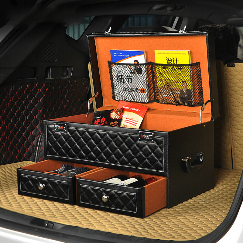 極速后備箱儲物箱汽車收納u整理車載多功能雜置物盒密碼尾箱內用