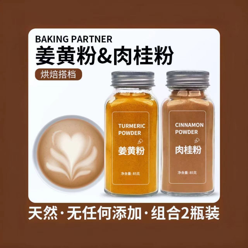 新貨正姜黃粉肉桂粉組合純黃金奶咖啡伴侶健身天然食用沖飲烘焙調