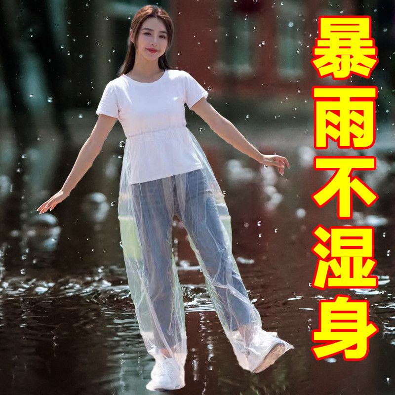一次性防雨褲加厚包腳防水戶外連腳塑料雨褲雨褲套漂流游樂場雨褲