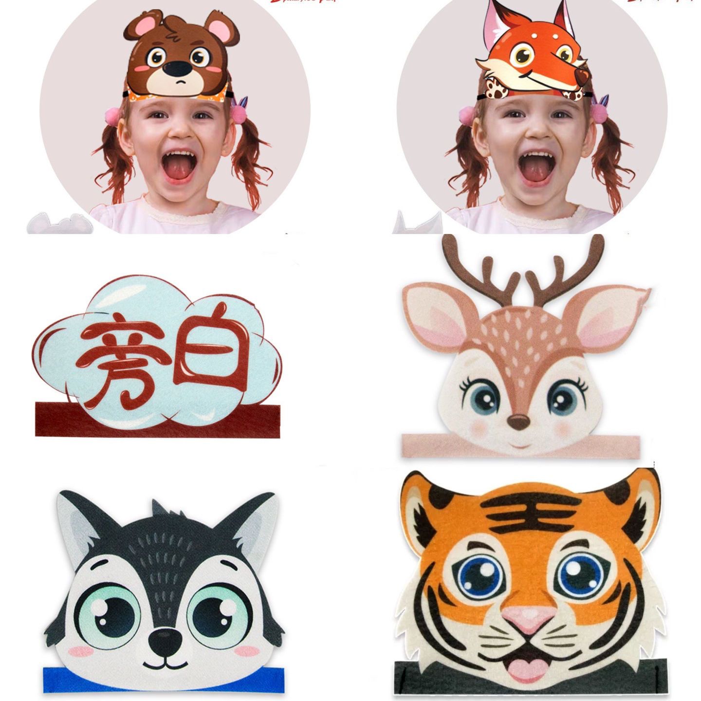 兒童動物頭飾表演講故事道具狐貍大象熊貓大灰狼老虎猴幼兒園環保