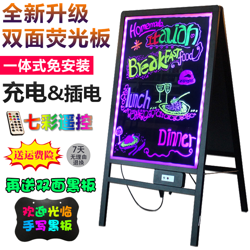 雙面熒光板插電充電一體式免安裝廣告板 熒光板店鋪用小黑板發光l