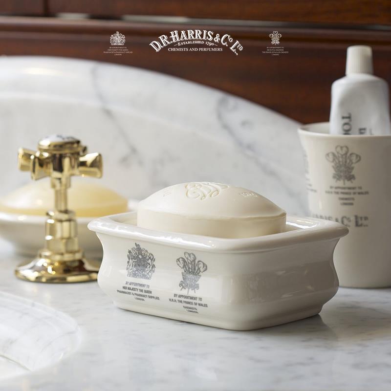 D.R.Harris-英國 復古陶瓷兩件套可拆瀝水香皂碟白色肥皂架收納盒