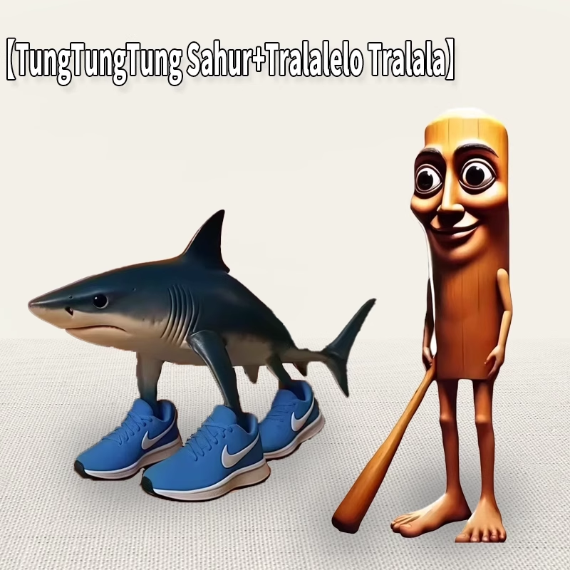 外國山海經玩具手辦掛件TungTungTungSahur耐刻鯊魚木頭人木棍人3