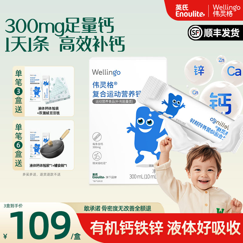 英氏偉靈格兒童液體鈣鐵鋅補鈣補鋅三合一送嬰幼兒寶寶食譜